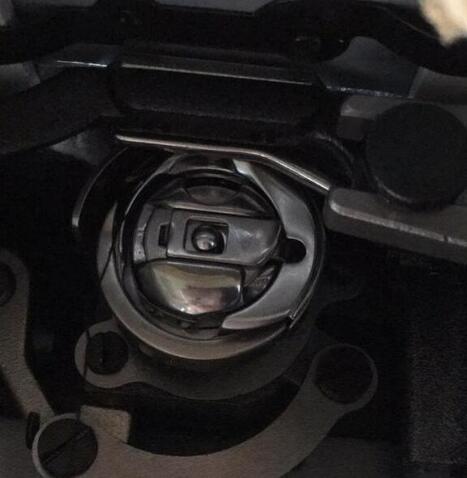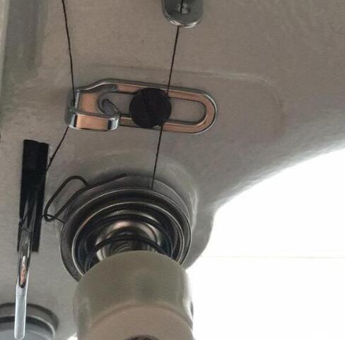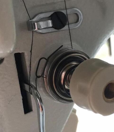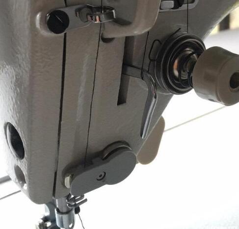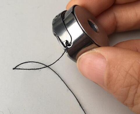 8、引線后一步穿過(guò)機(jī)針孔,穿線完成。